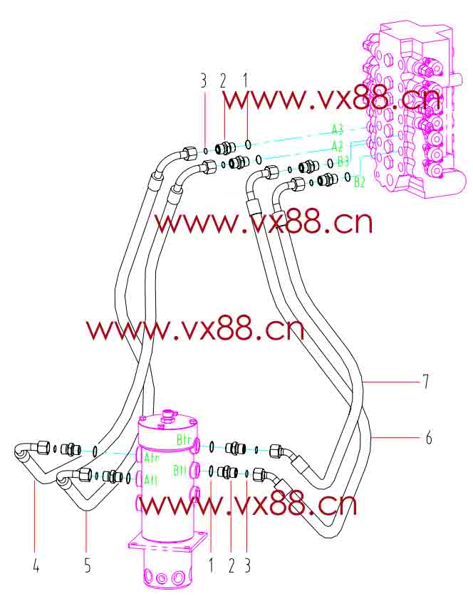 <会员可以下载完整无水印资料>     图文名称:主液压系统-至行走管路     所属机型:CLG906     图文编号:507     物料编号: