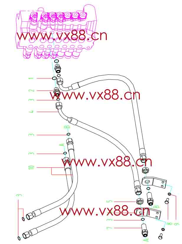 <会员可以下载完整无水印资料>     图文名称:主液压系统-至动臂管路     所属机型:CLG906     图文编号:509     物料编号: